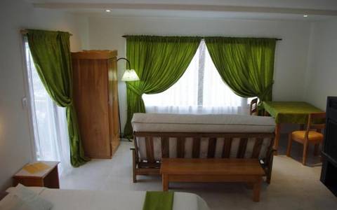 De 30 m2, con capacidad para 4 personas, esta decorada en tono pastel, completamente amoblada y equipada. Posee sommier king size (separable) y sommieres individuales. Calefacción todo el año por loza radiante, agua caliente las 24hs y amplios ventales con una excelente y directa vista al bosque. Posee baño privado compartimentado, ducha escocesa, kitchinette y audio HF.